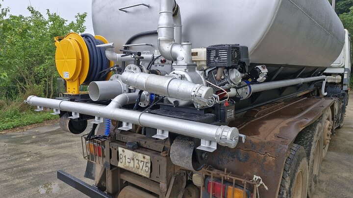 엔진 양수기를 이용해 앞 고압살수와 탱크 내부 흡입이 가능하도록 설계하였습니다.